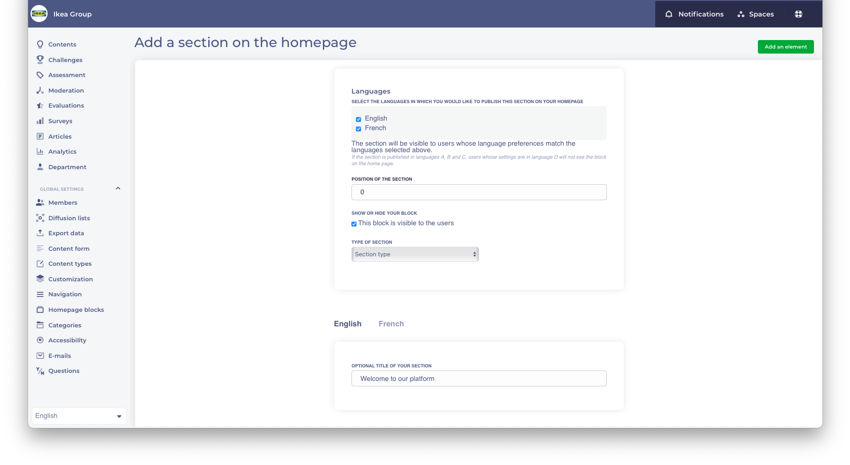 - A rich text and HTML bloc to give maximum flexibility to our admins