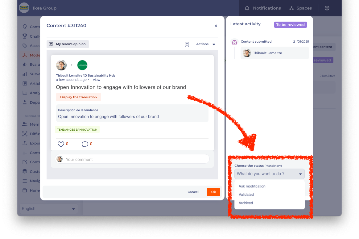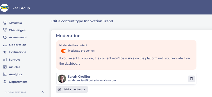 By following these steps, you can effectively moderate content on the platform, ensuring that all contributions align with your organization’s standards and values.