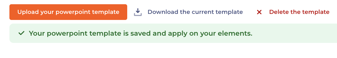 When the template is ready, upload it to the dashboard dashboard > content type > Powerpoint Template > Upload your Powerpoint Template