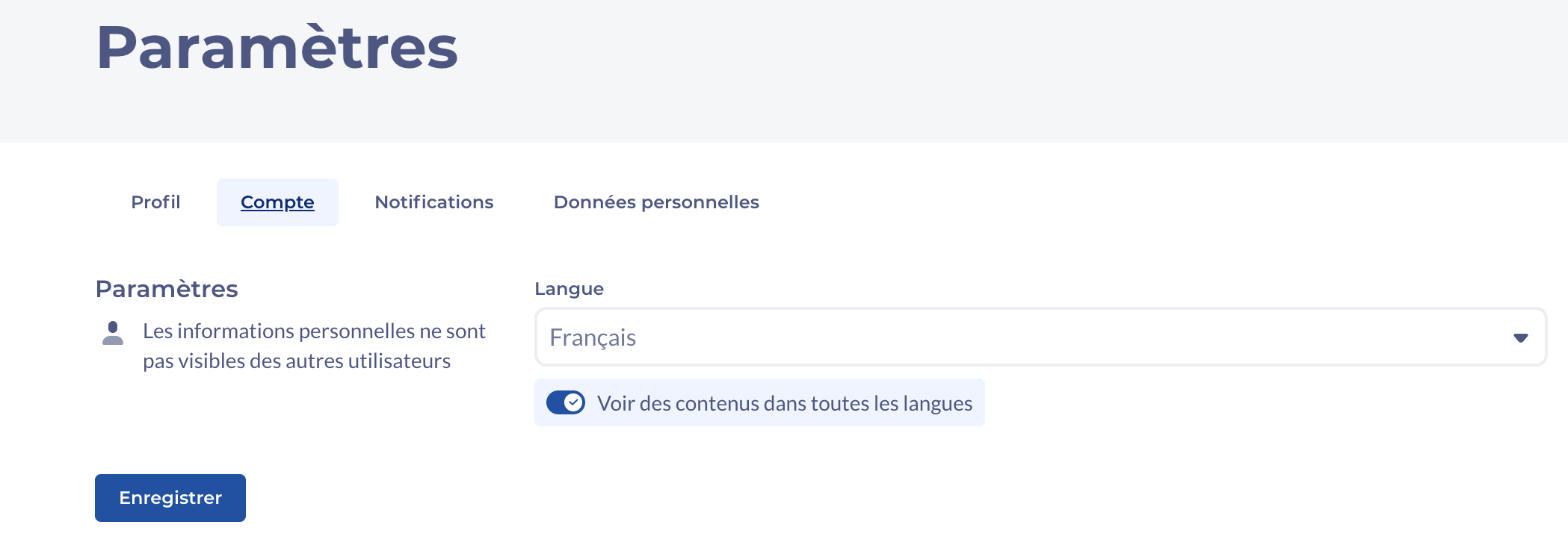 Paramètres des utilisateurs sur la plateforme - Version française