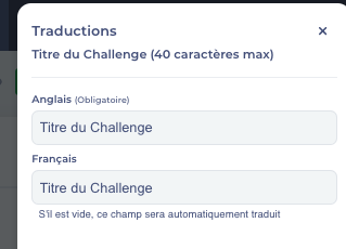 Pour les formulaires et les challenges, un système de traduction par défaut est proposé à l'administrateur. Sans action de l'administrateur, une traduction automatique sera proposée.