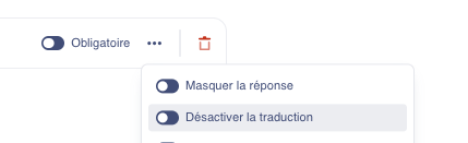 Certaines réponses dans les formulaires ne nécessitent pas de traduction. L'administrateur peut alors désactiver la traduction automatique.