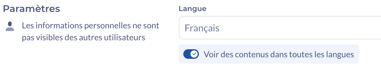 En tant qu'auteur, vos contenus sont visibles uniquement dans la langue de création, en consultation comme en édition et quelle que soit la langue de vos paramètres utilisateurs.