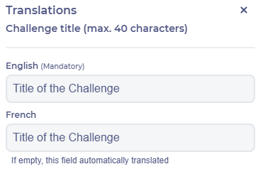 For forms and challenges, a default translation system is proposed to the administrator. If no action is taken by the administrator, an automatic translation will be proposed.